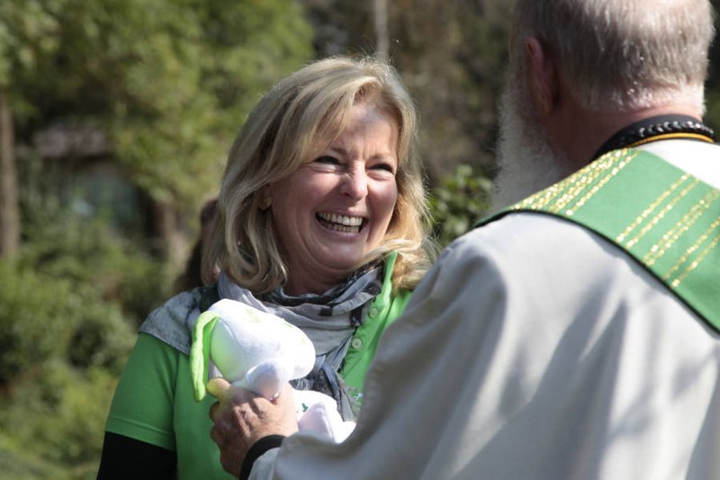 Auch Bürgermeister Christian Scheider, der ja mittlerweile selbst stolzer Hundebesitzer ist, besuchte das TIKO und ließ seinen Hund bei der Tiersegnung durch Pater Anton segnen.