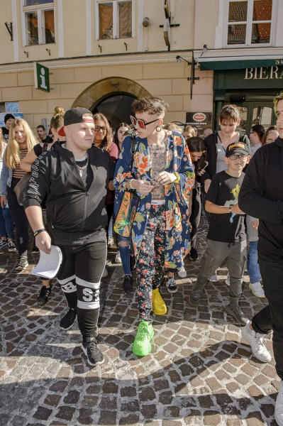Pünktlich erschien der Hip Hopper und Rapper Ian Jules aus Klagenfurt und gab neben handsignierten Autogrammen auch Stoffarmbänder aus und posierte für Fotos mit den Fans. Mit seinen Outfits und seiner Musik tritt er gegen Intoleranz auf. Seite erfolgreichen Singles "Anthem" und "Symphony", die beide bereits an der Spitze der Rap-Charts waren, sind auf allen Streamingportalen und Onlinestores erhältlich.
