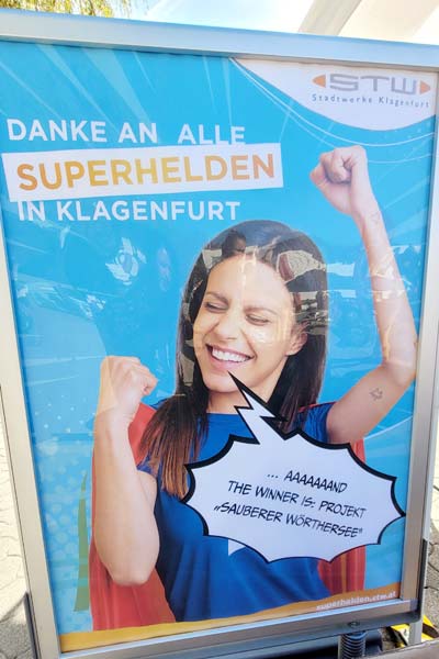 Das erste Siegerprojekt der Superhelden-Kampagne – „Sauberer Wörthersee, sauberes Badegefühl“ – wurde am Freitag in die Tat umgesetzt. Da sich eine deutliche Mehrheit der STW-Superheldinnen und -Superhelden für eine Seenreinigung am Wörthersee entschieden hat, wurde mit Unterstützung der Österreichischen Bundesforste und dem Umwelttauchclub Kärnten eine Unterwasser-Aufräumaktion im Strandbad Klagenfurt organisiert.