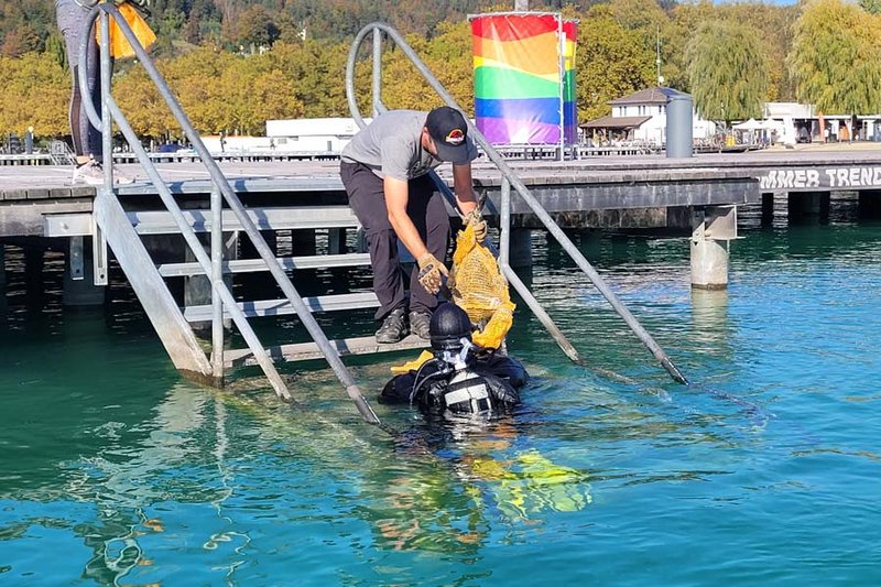 Oktober 2022  Seenreinigung: Ein halbe Tonne Müll wurde aus dem Wörthersee geholt