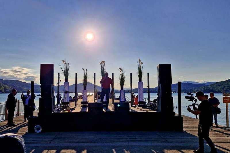 Während die vier Sänger die Mittelbrücke im Strandbad in eine Bühne verwandelten, bot der Wörthersee mit einem spektakulären Sonnenuntergang die perfekte Kulisse.