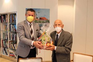 Mit 102 Jahren ist er einer der ältesten Bürger der Stadt – und er ist noch immer sehr mobil. Franz Rabitsch schaute anlässlich seines stolzen Geburtstags persönlich bei Bürgermeister Christian Scheider im Rathaus vorbei. Beachtlich: Noch heute fährt Rabitsch gerne Fahrrad und spielt Ziehharmonika.
